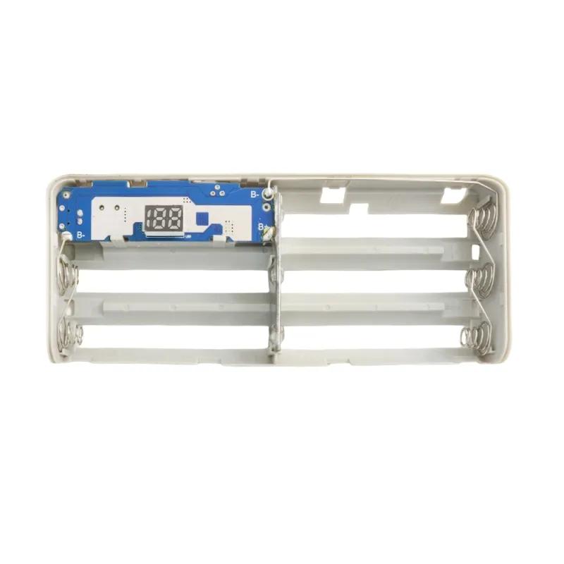 این یک کیس پاوربانک DIY است که برای کاربران حرفهای و علاقهمندان به الکترونیک طراحی شده تا با نصب 5 عدد باتری 3.7 ولت از نوع 18650 سرتخت ، یک پاوربانک با ظرفیت قابل توجه بسازند. این کیس شامل یک برد هوشمند با نمایشگر دیجیتال برای نمایش میزان شارژ، کنترل ولتاژ، و محافظت در برابر ولتاژ بیش از حد، جریان بیش از حد و اتصال کوتاه میباشد. برد داخلی دارای دو خروجی USB با ولتاژ 5 ولت است که یکی جریان 2.1 آمپر و دیگری 1 آمپر را تأمین میکند، و مناسب برای شارژ انواع گوشی، تبلت، دستگاههای IoT و ابزارهای همراه است. همچنین یک چراغ LED و کلید فشاری برای روشن/خاموش کردن یا نمایش درصد باتری نیز روی برد تعبیه شده است. این کیس فاقد باتری داخلی است و کاربران باید باتریها را بهصورت جداگانه تهیه و نصب نمایند. طراحی ماژولار و قابل تعویض باتریها، این پاوربانک را به گزینهای قابل اعتماد برای کاربران تبدیل کرده است.