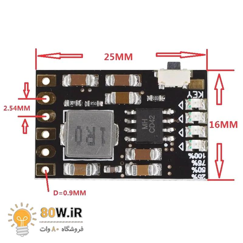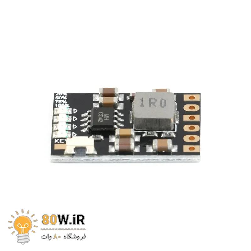 The MH-CD42 Lithium Battery Charger Module is a practical module used to charge lithium batteries. This module is capable of charging lithium polymer and lithium ion batteries such as 18650 batteries. You can easily charge the battery using a mobile phone charger or a 5V power supply. By connecting the battery to the BAT and GND pins of this module, you can charge your battery in a simple way. Also, this charger module has an output port that uses a switch to connect the power input path to the output.
