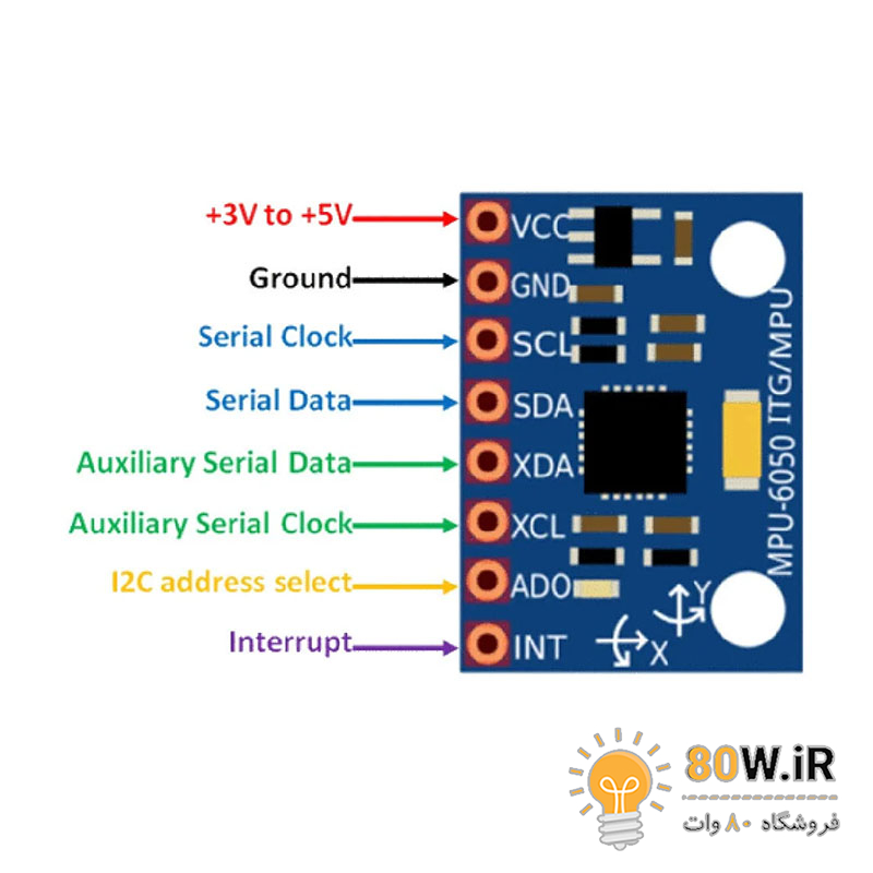 • رابط ارتباطی: I2C (آدرس پیش‌فرض 0x68)
