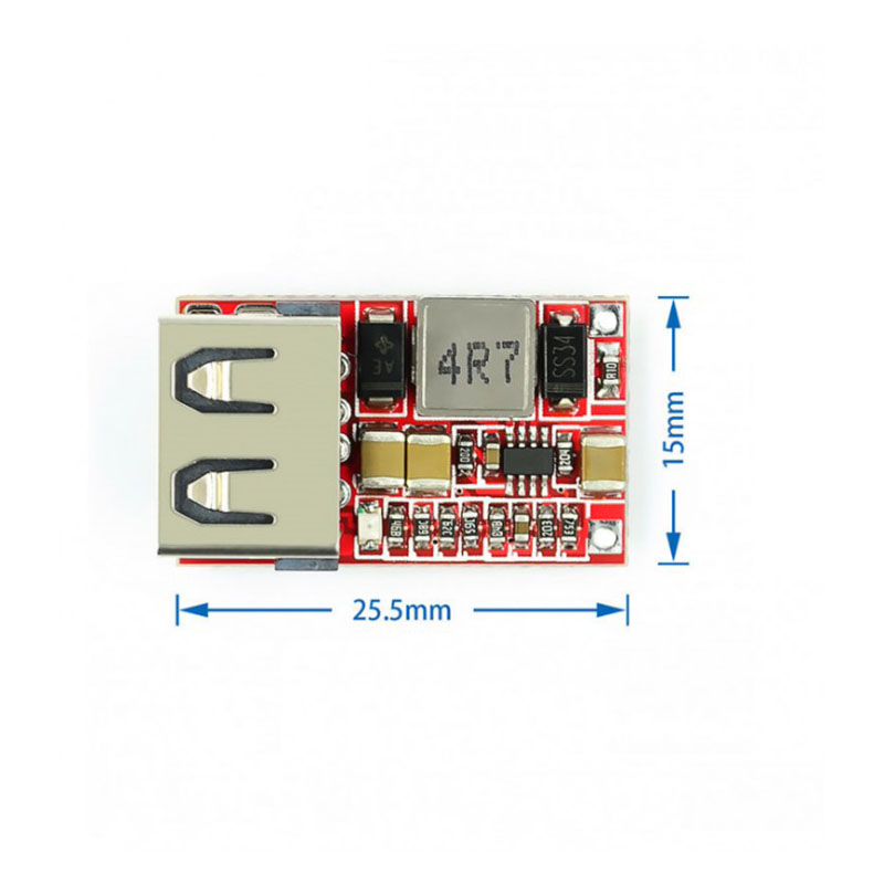 This mini DC-DC step-down voltage converter module supports 6-24V voltage input and 5V 3A output with input polarity reverse protection and output over-voltage protection, short circuit protection.