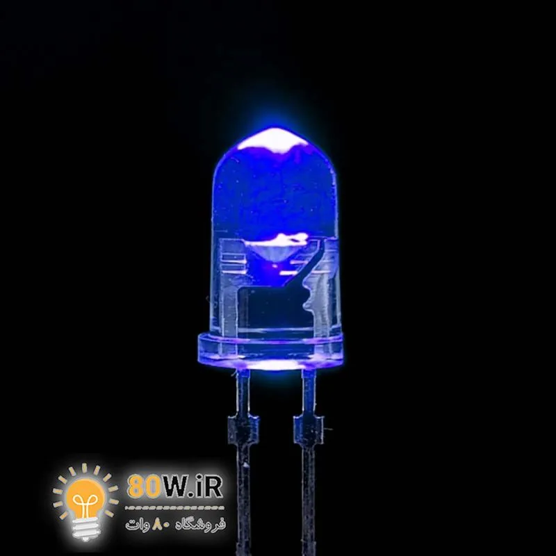 LED آبی 5mm شیشه ای پایه کوتاه (بسته 20 عددی)
