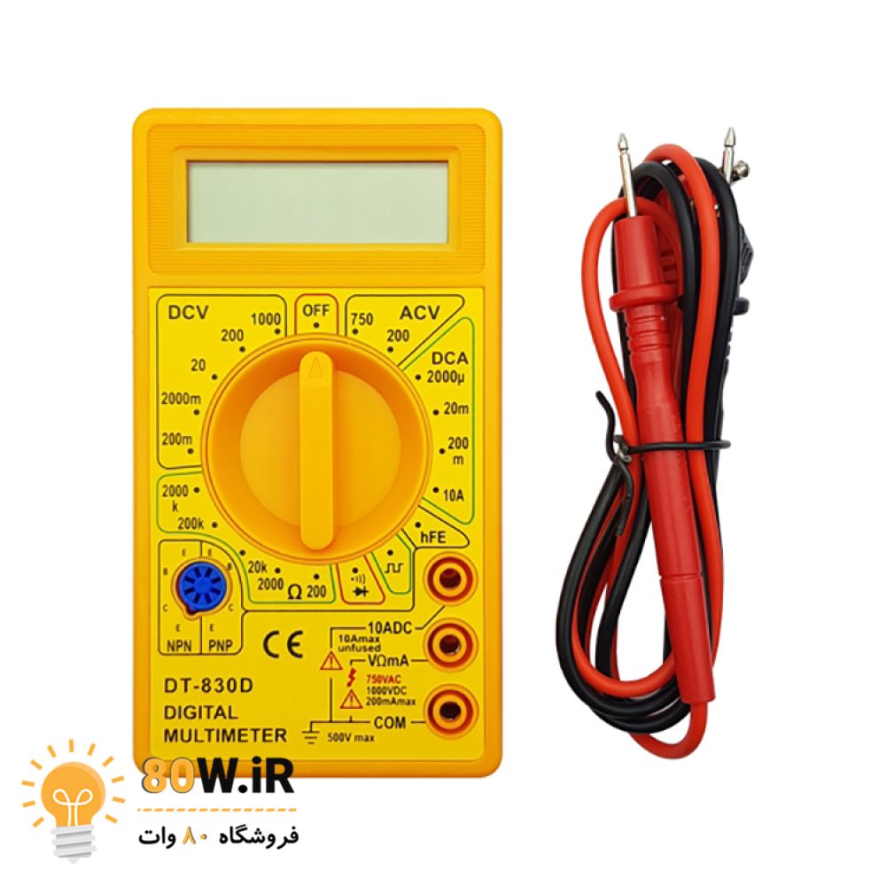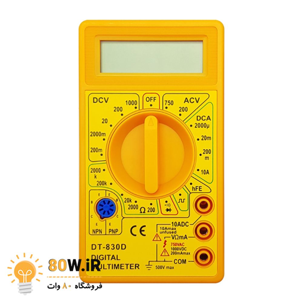 مولتی متر DT-830D یکی از مولتی مترهای موجود در بازار ایران که به علت قیمت ارزان وکارایی بالای خود امروزه مورد توجه تعمیر کاران ، دانش آموزان و غیره… قرار گرفته است.